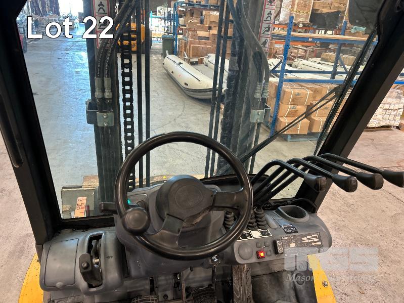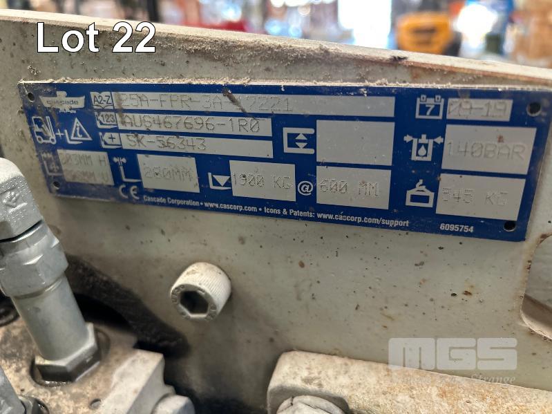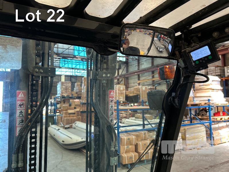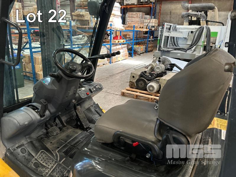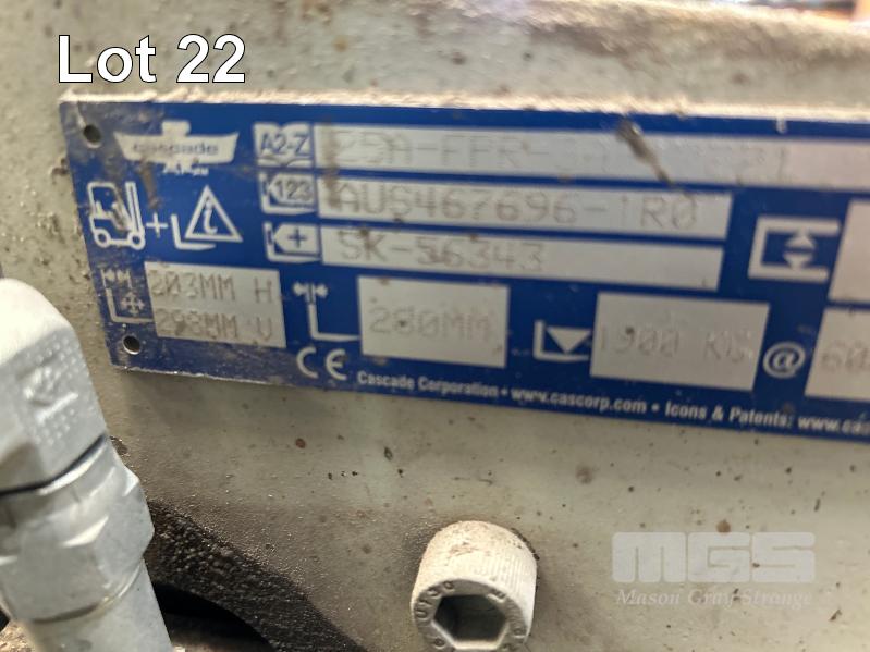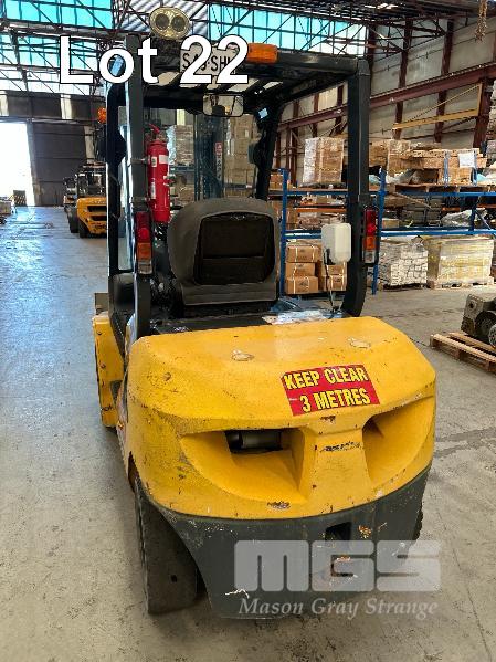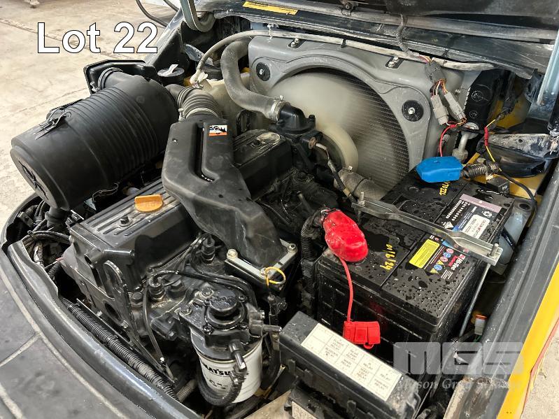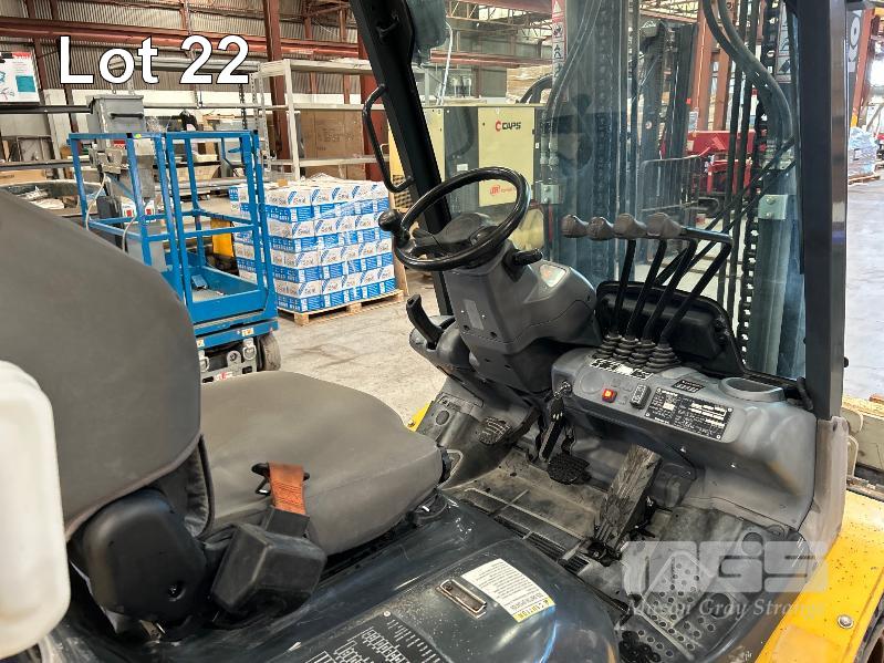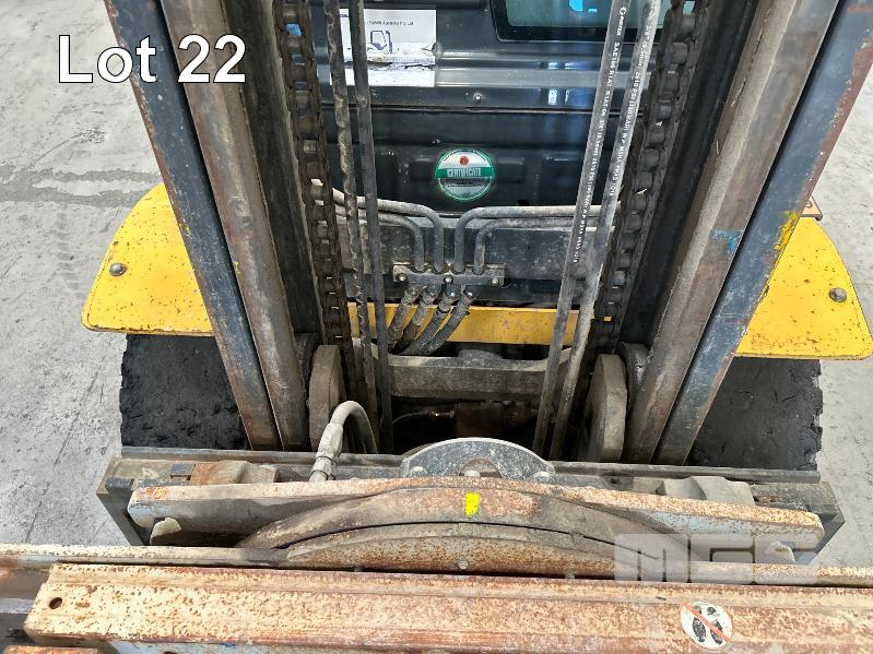 2019 KOMATSU FORKLIFT, 3 TONNE MOD: FD30T-17 REG: S49 SHM (SA) S/NO: 356757 UNIT NO: K24211 MAX LIFT CAP:1,850kg (WITH ROTATOR) FITTED WITH CASCADE 360 DEGREE ROTATOR ATTACHMENT MOD: 25A-CFR-3A-00105 MAX LIFT HEIGHT: 3500mm FORK TYNE SHIFT EXTRA WIDE 2 STAGE MAST 4 CYLINDER DIESEL ENGINE HOUR: 1,664 SHOWING FITTED WITH SAFETY MANAGEMENT SYSTEM SOLID TYRES, 1 x KEY KEY #18