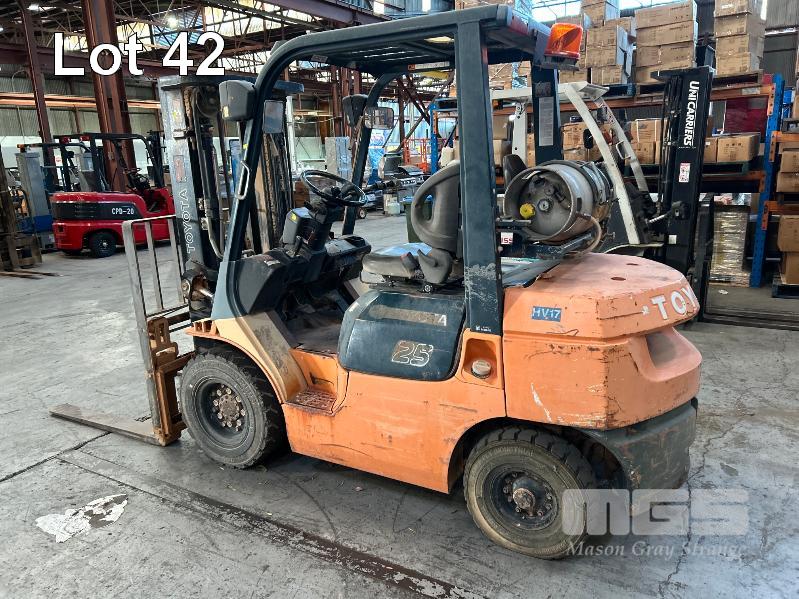 2004 TOYOTA FORKLIFT 2.5 TONNE MODEL: 42-7FG25 S/N: 7F-G25-24902 4 CYLINDER LPG ENGINE 3 STAGE CONTAINER MAST TYNE SHIFT, SOLID TYRES 1 x KEY KEY #44