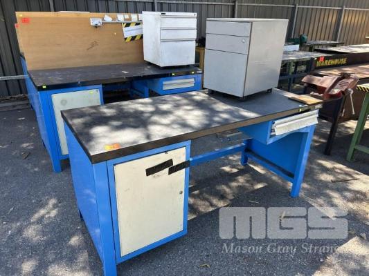 STEEL WORK BENCH, 1800 x 800 x 900mm, DAMAGED DRAWER, UNDERBENCH CUPBOARD, DAWN 100mm VICE & 3 DRAWER FILING CABINET