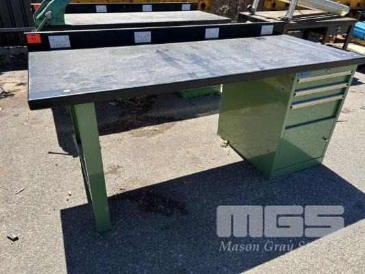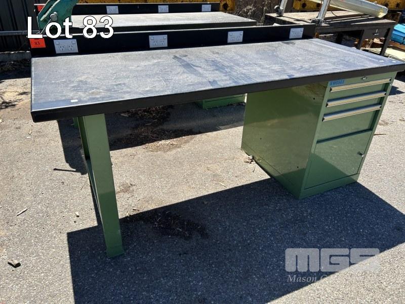 STEEL WORK BENCH, 2200 x 800 x 900mm, WITH POWER POINTS & UNDERBENCH STORAGE DRAWER