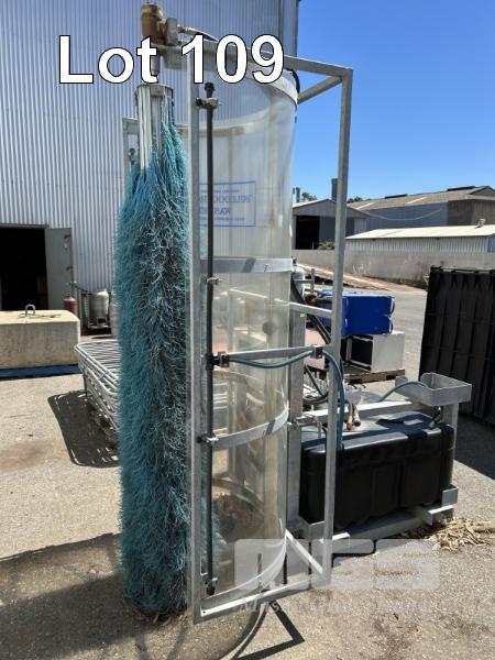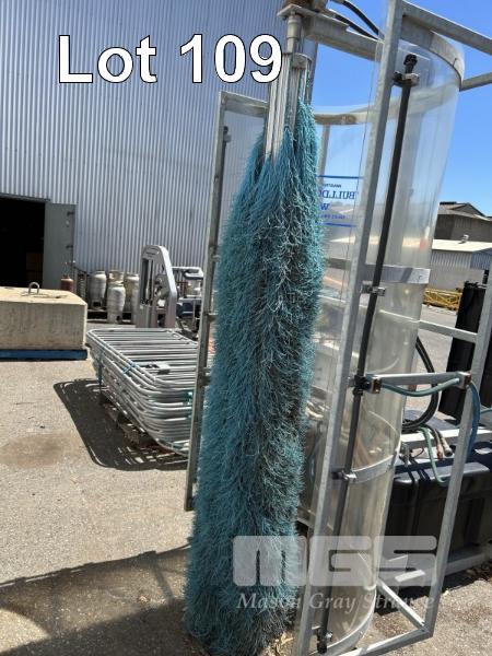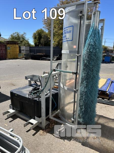 ROTARY WASHER, BULLDOG, INDUST BRUSHWARE FORK MOUNT HYDRAULICALLY DRIVEN WITH 40 LITRE POLY WATER TANK & 12V PUMP GALV STEEL FRAME & FORK POCKETS