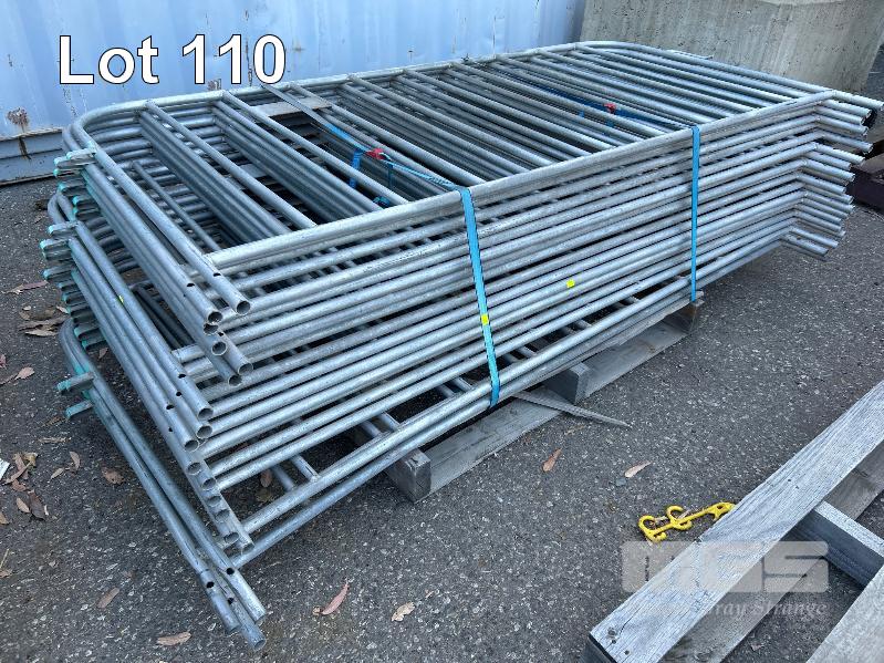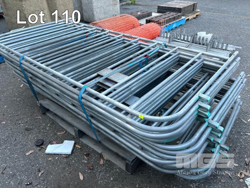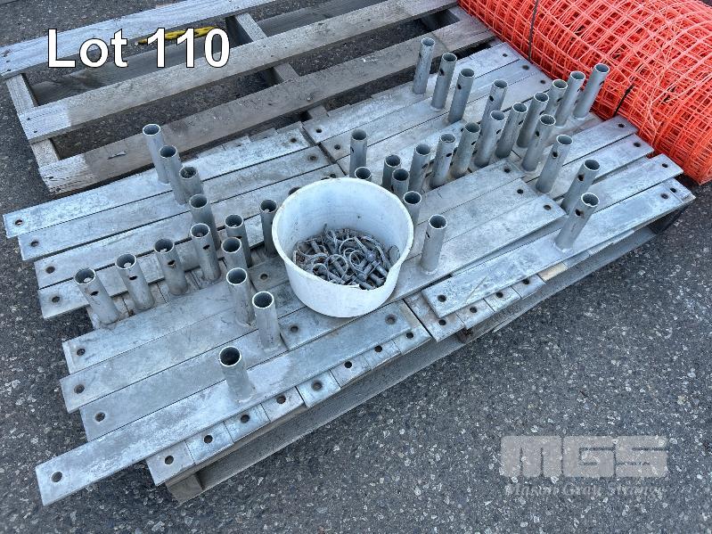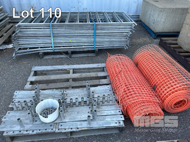 TEMPORARY BARRIER FENCING, GALV STEEL TUBULAR CONSTRUCTION 20 x PANELS, 2100 x 1100mm (H) WITH MATCHING STEEL BASE PLATE, CLIPS & 2 x ROLLS PLASTIC BARRIER MESH
