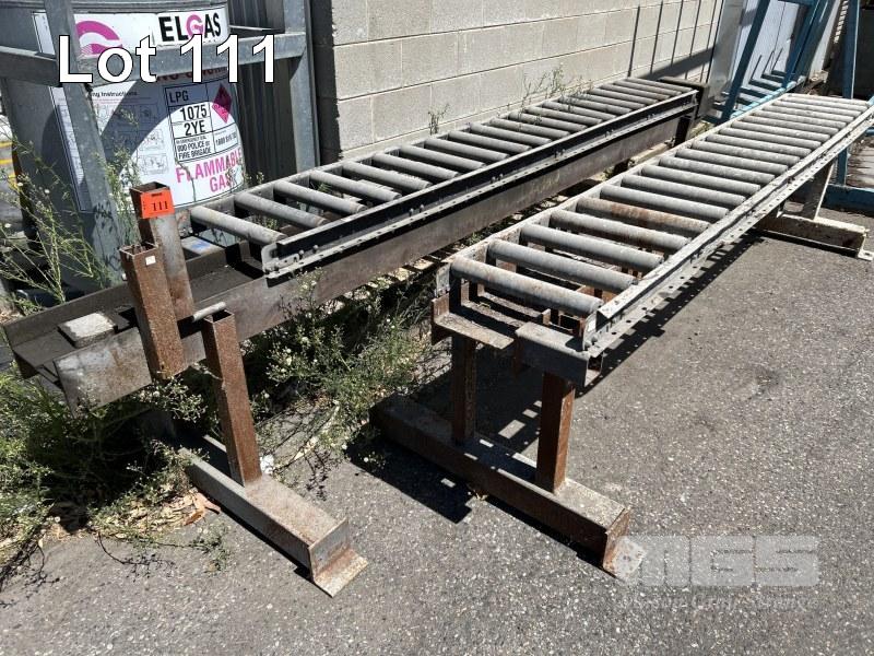 2 x ROLLER CONVEYOR SECTIONS ON STANDS 2900mm (L), 380mm (W) x 750mm (H)