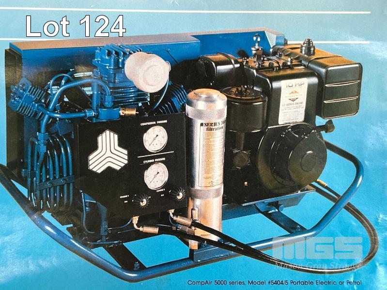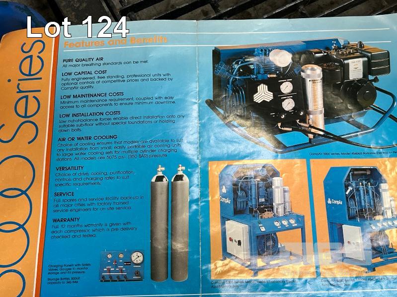DIVE TANK FILL, AIR COMPRESSOR, COMPAIR MOD: 10/1E 415V, 5.5kw, ON STAND WITH ACESSORIES AND MANUALS