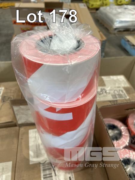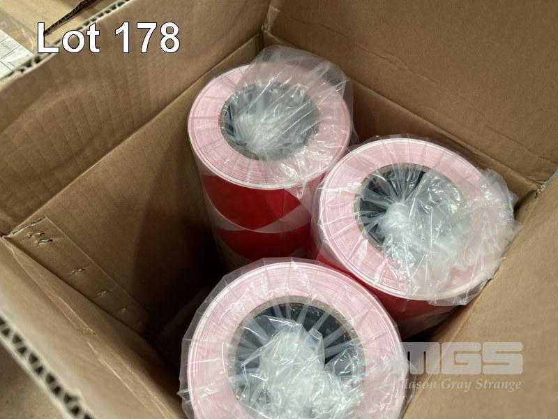 DANGER/WARNING TAPE, RED & WHITE STRIPED, 75mm x 100m, 9 x BOXES, (20 ROLLS/BOX)