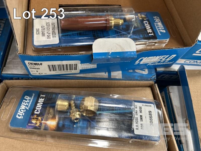 HOSE JOINERS, CIGWELD COMET INCLUDING 5/5" 18 UNF RH OXY, WB34 LH HOSE END KITS, 5mm, CUTTING NOZZLES, ETC 35 x BOXES APPROX