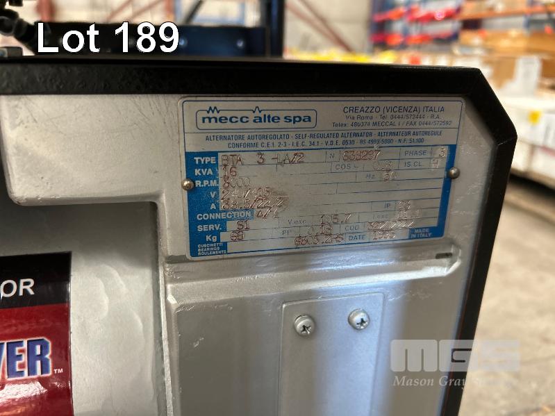 GENERATOR, ADVANCED POWER 16KVA WORKMATE, MECC ALITE SPA TYPE: BTA-3-LA/2 240/415V POWERED BY KOHLER COMMAND 18 PETROL ENGINE KEY START, MOBILE