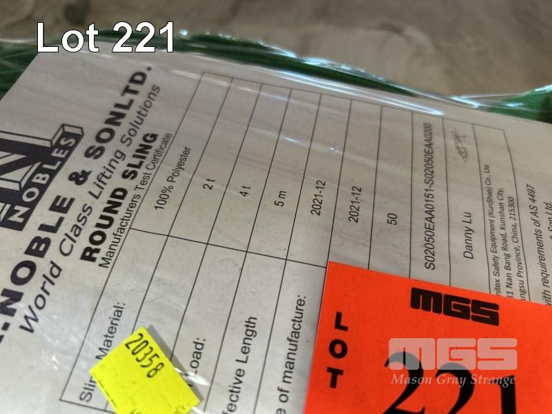 LIFTING SLINGS, NOBLE & SONS, GREEN, 2 x 2 TONNE @ 5m, AS NEW