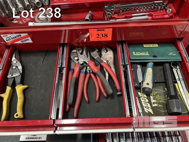 TOOL CHEST, JBS 6 x DRAWER WITH ASSORTED HAND TOOLS INCLUDING SIDCHROME 20 PIECE SOCKET SET, 2 x COMBINATION SPANNER SETS, ETC