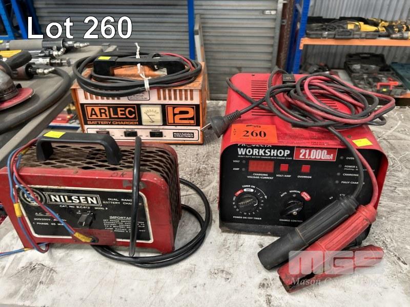 BATTERY CHARGERS, INCLUDING PROJECTA WORKSHOP, 6/12/24V, ARLEC 12 & NILSEN MODEL-3