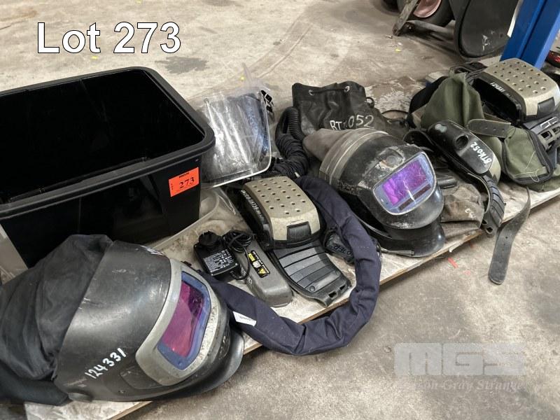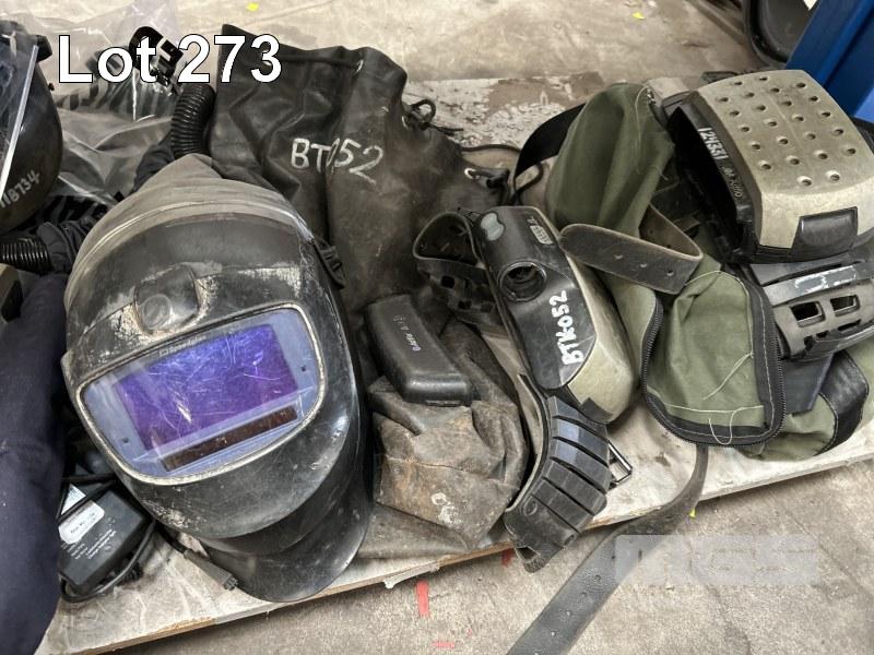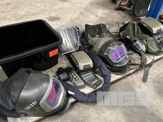 2 x POSITIVE AIR WELDING MASKS, 3M ADFLO SYSTEMS WITH BATTERIES AND CHARGERS