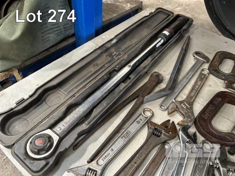 QUANTITY ASSORTED HAND TOOLS, INCLUDING NORBAR TORQUE WRENCH 340, SHIFTERS, VICE GRIPS, HAMMERS, SPANNERS, PLIERS, CUTTERS, ETC WITH SOCKET SET & TOOL BAG