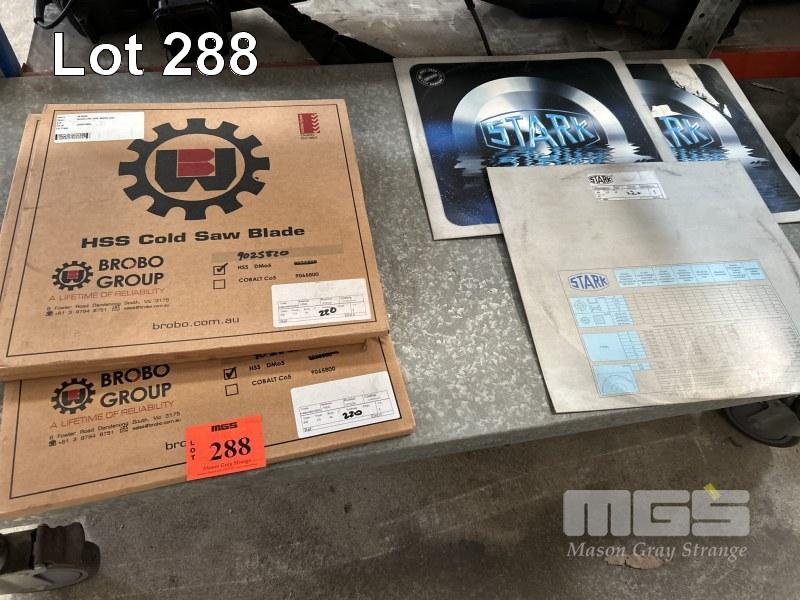3 x COLD SAW BLADES, BROBO, HSS, DMOS 350mm, 220 TOOTH & 3 x STARK HSS, 350mm DIAMETER 220 TOOTH, AS NEW