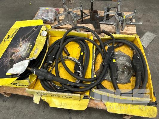 4 x MIG WELDING HAND PIECES & CABLES, TWECO PROFESSIONAL MOD: 9045-02210 TIP & SHROUD ACCESSORIES IN BAG & 3 x LARGE CABLE DRUM HOLDERS 1 x PALLET