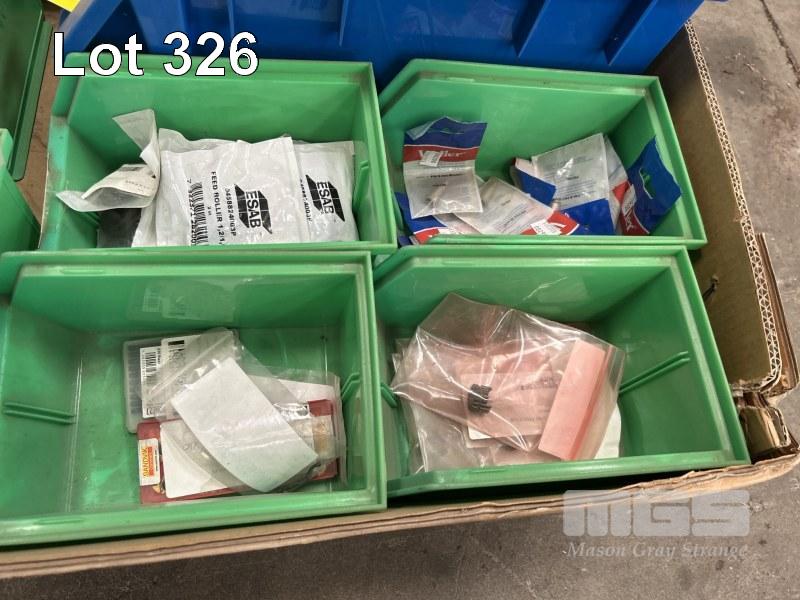 MIG & TIG WELDING ACCESSORIES, ESAB INCLUDING TIPS, SHROUDS, NOZZLES, ROLLER FEEDS, CONNECTORS, ETC IN 23 x PARTS DRAWERS 1 x PALLET