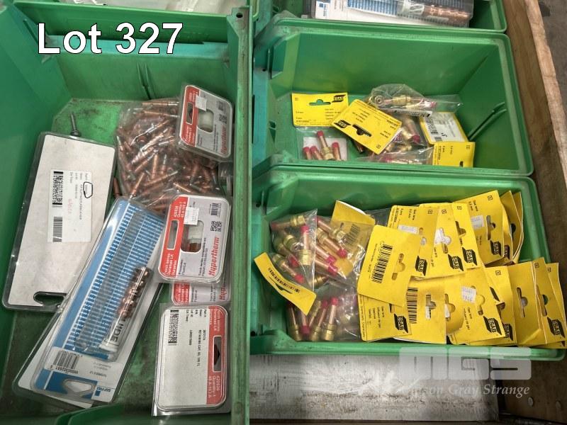 MIG & TIG WELDING ACCESSORIES, ESAB & WESS INCLUDING GAS LENSES, TIPS, CAPS, ROLLER FEEDS, SWAN NECKS, ETC IN 14 x PARTS DRAWERS 1 x PALLET
