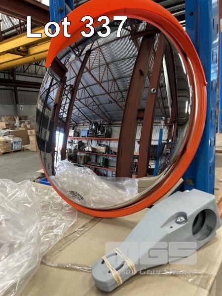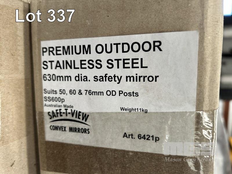 2 x DOME SAFETY MIRRORS, SAFE T VIEW, PREMIUM OUTDOOR STAINLESS STEEL, 630mm DIAMETER WITH MOUNTING BRACKET, NEW IN BOX