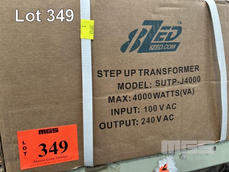 STEP UP & STEP DOWN TRANSFORMERS & VOLTAGE CONVERTERS, 8ZED INC 1 @ 4000w, 100V AC TO 240V AC, 1 @ 3000w, 240V TO 120V, 1 @ 1000w, 240V TO 120V, 1 @ 1000w, 120V AC TO 240V AC & 2 @ 100w, 240V AC TO 120V AC AS NEW IN BOX 1 x SHELF