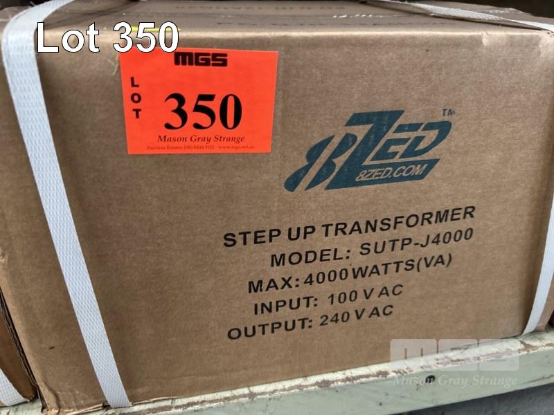STEP UP & STEP DOWN TRANSFORMERS & VOLTAGE CONVERTERS, 8ZED INC 1 @ 4000w, 100V AC TO 240V AC, 1 @ 3000w, 240V TO 120V, 1 @ 1000w, 240V TO 120V, 1 @ 1000w, 120V AC TO 240V AC & 2 @ 100w, 240V AC TO 120V AC AS NEW IN BOX 1 x SHELF
