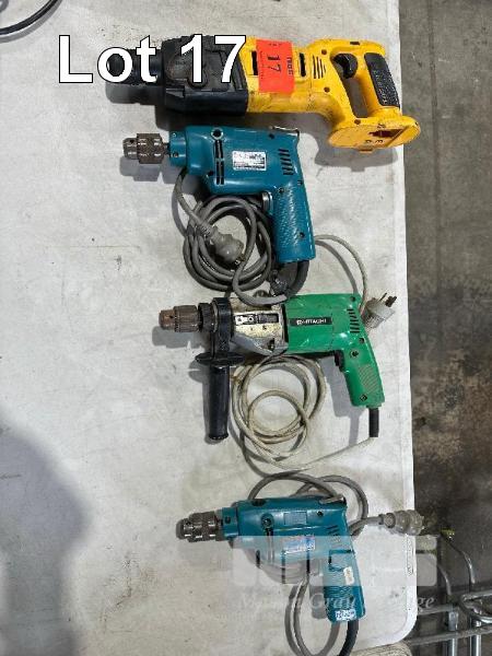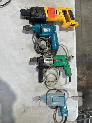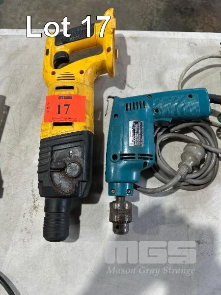 ROTARY HAMMER DRILL, 18V NO BATTERY OR CHARGER, 2 x MAKITA DRILLS & 1 x HITACHI DRILL 240V