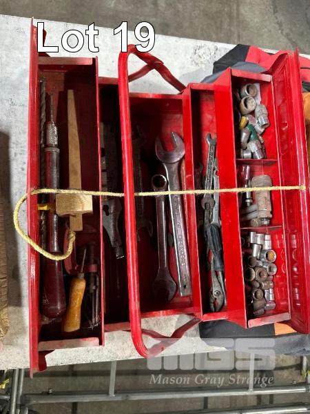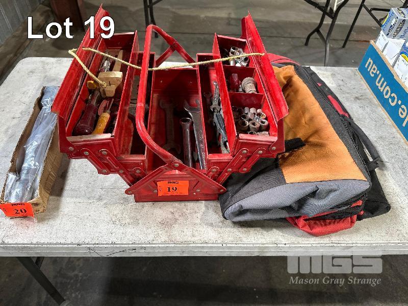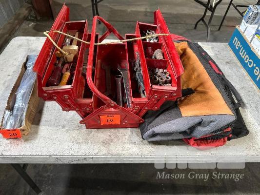 CANTILEVER TOOL BOX WITH ASSORTED TOOLS & 2 x SOFT TOOL BAGS
