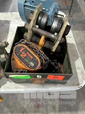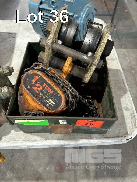 2 x BEAM TROLLEYS & 1/2 TONNE CHAIN BLOCK