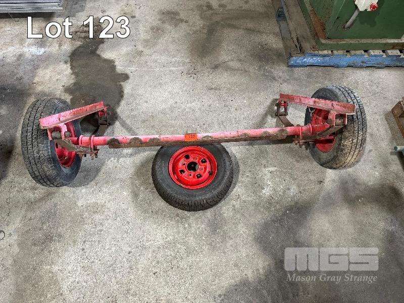 TRAILER AXLE WITH LEAF SPRINGS, 1500mm(W) & 3 x WHEELS, 10"