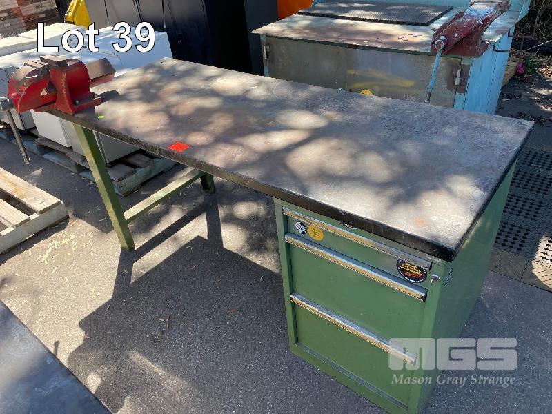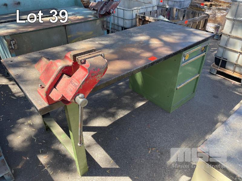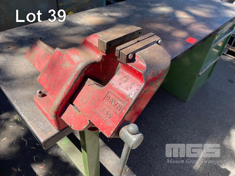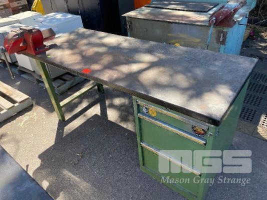 STEEL WORK BENCH, 1400 x 800mm 3 DRAWER WITH DAWN 150 OFFSET VICE