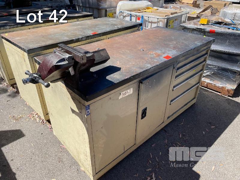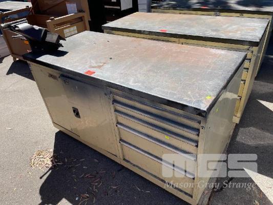 STEEL WORKSHOP BENCH, 1720 x 900mm 2 DOOR/5 DRAWERS WITH DAWN 150 OFFSET VICE