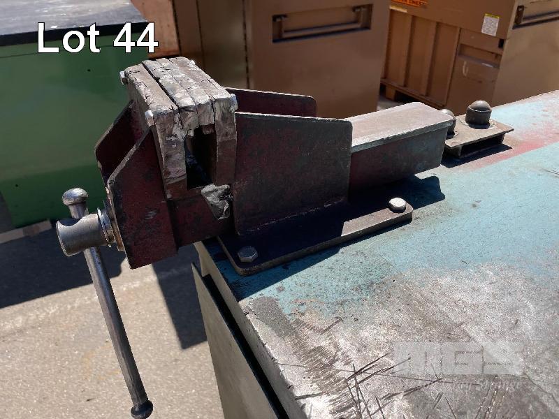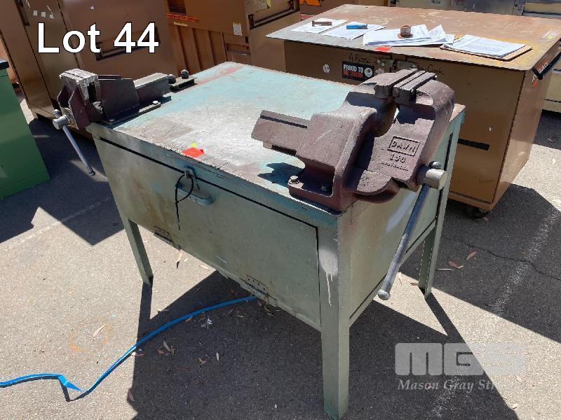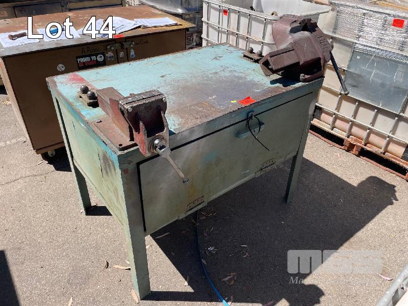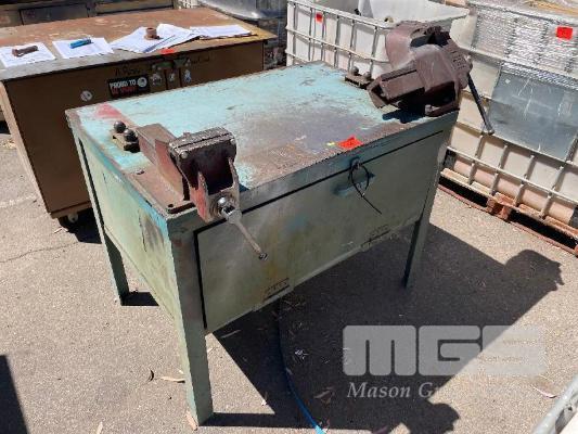 STEEL WORKSHOP BENCH, 1230 x 830mm SINGLE DOOR WITH 2 x VICES, 150mm & 150mm OFFSET VICE