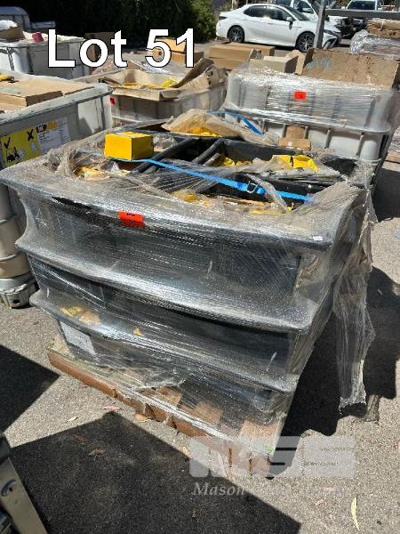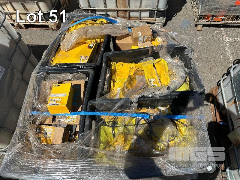 CONTENTS OF PALLET 16 TUBS CAT PARTS SHIM PACKS, BEARINGS, TANK CAPS, VARIOUS LAMPS