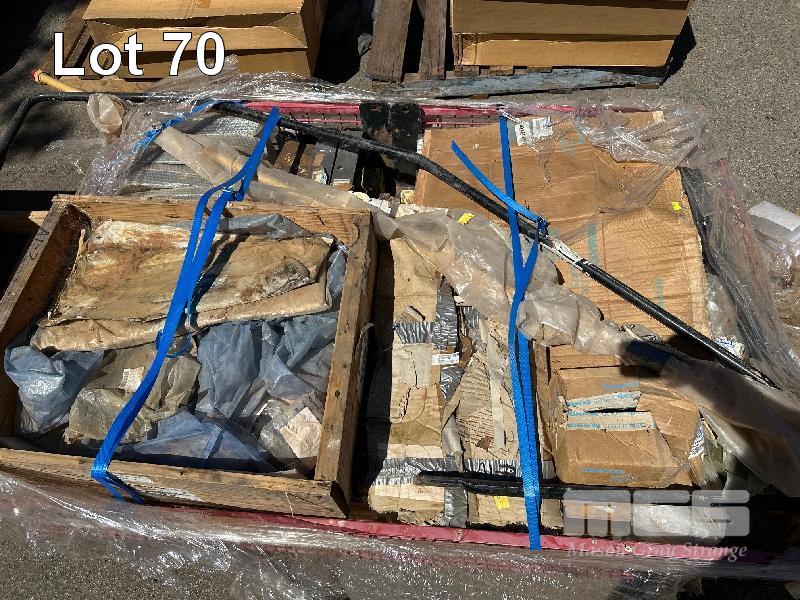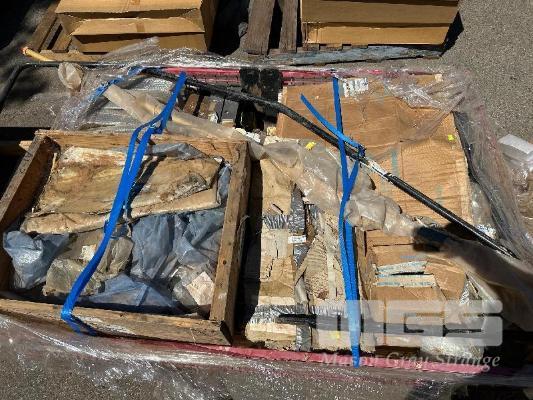 CONTENTS OF PALLET ASSORTED KOMATSU PARTS, EXHAUST SECTIONS, BRACKETS, PIPES, ETC