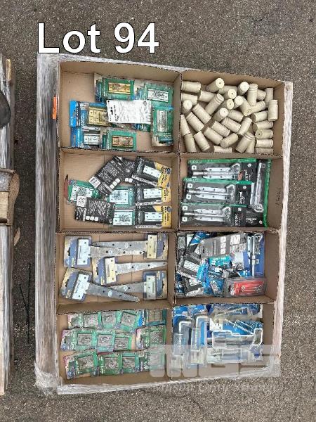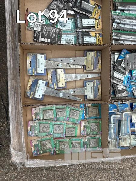 ASSORTED HARDWARE, SLIDE BOLTS, SCREWS, HINGES ETC.