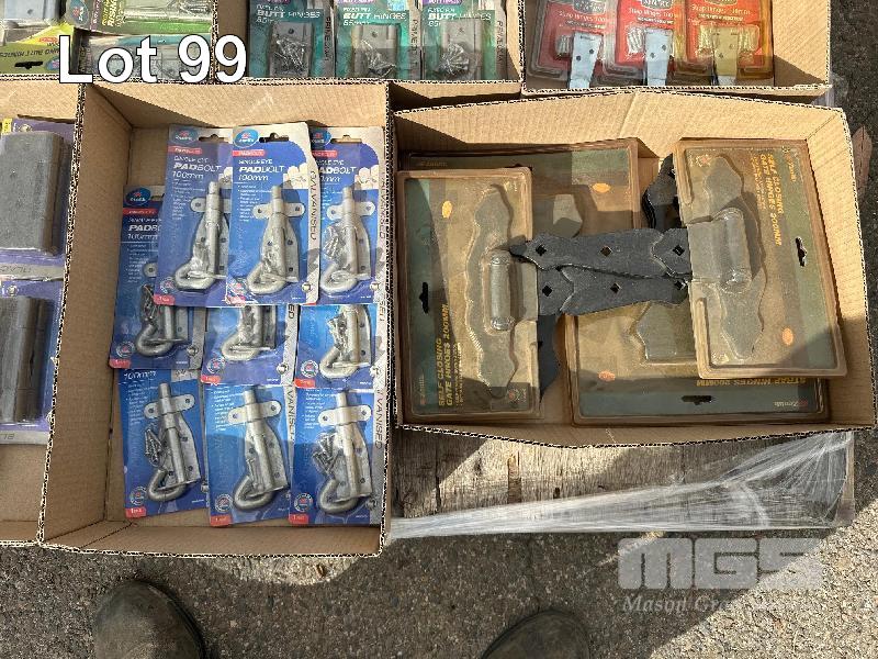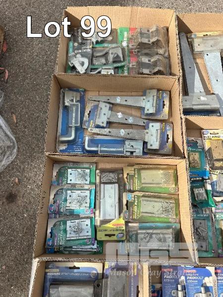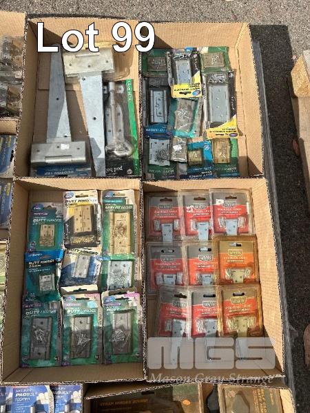ASSORTED HARDWARE, SLIDE BOLTS, SCREWS, HINGES ETC.