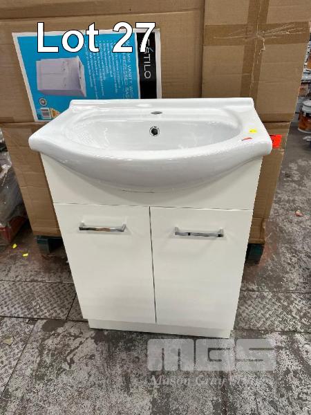 SEMI RECESSED BASIN, ESTILO 610 (W) x 430 (D) x 850mm (H) WHITE MELAMINE FINISH SINGLE TAP HOLE