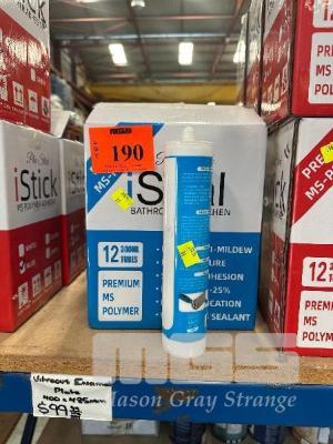 SEALER PHO STICK, I-SEAL, BATHROOM & KITCHEN PREMIUM MS-POLYMER, WHITE, PRO ANTI MILDEW, EXP 8/24 3 x BOXES, (12 x 300ml TUBES/BOX)