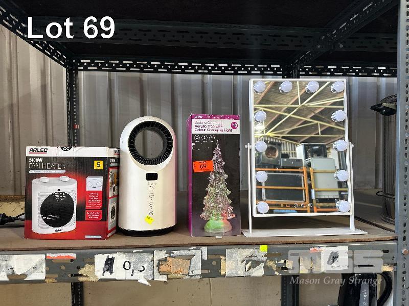 2 x FAN HEATERS, ACRYLIC COLOUR CHANGING CHRISTMAS TREE & VANITY MIRROR