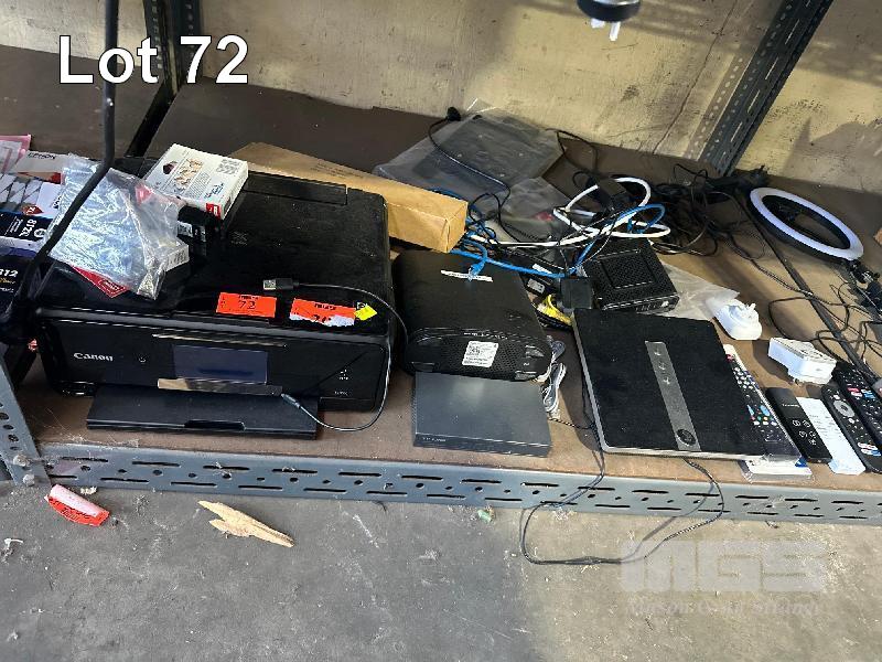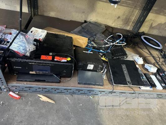 ASSORTED OFFICE ELECTRONICS, NETWORKING CABLES, EXTENSION CORDS, POWER BOARDS & 1 x BOX TRIPOD STANDS, ETC CONTENTS 3 x BAYS
