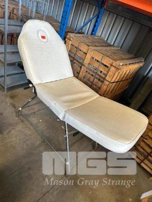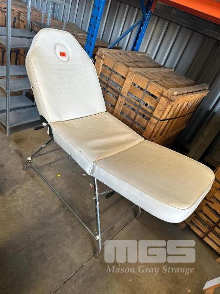 MASSAGE TABLE, WHITE VINYL, ADJUSTABLE INCLINE & FOOTREST