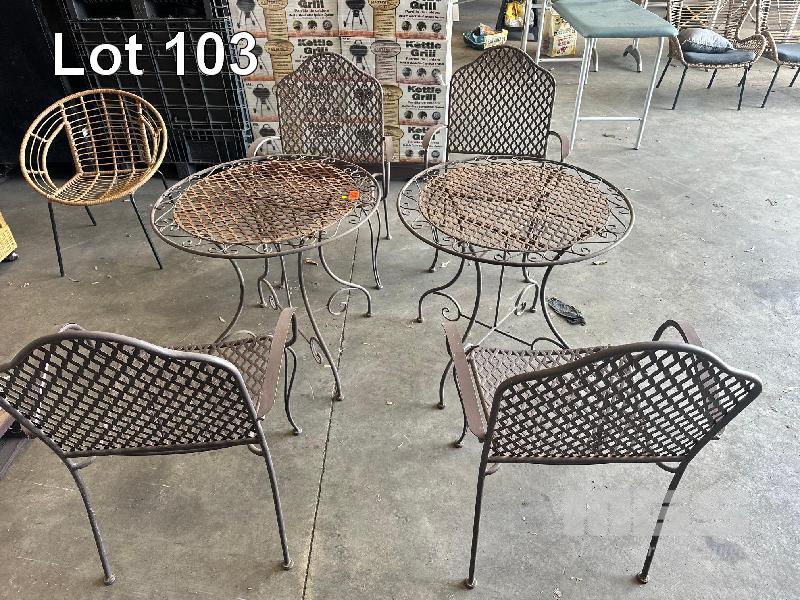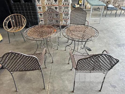 2 x STEEL GARDEN TABLES, 900mm (D) & 4 x STEEL CHAIRS TO MATCH
