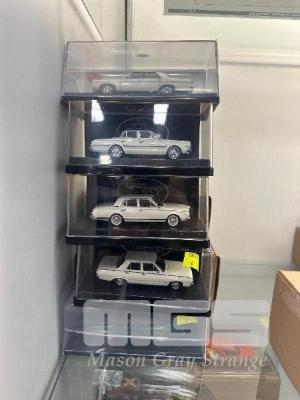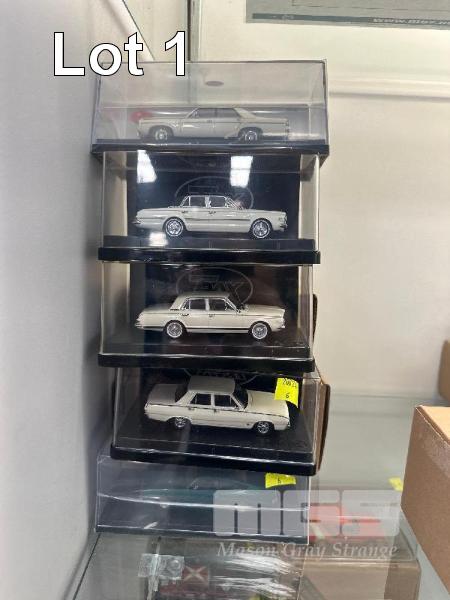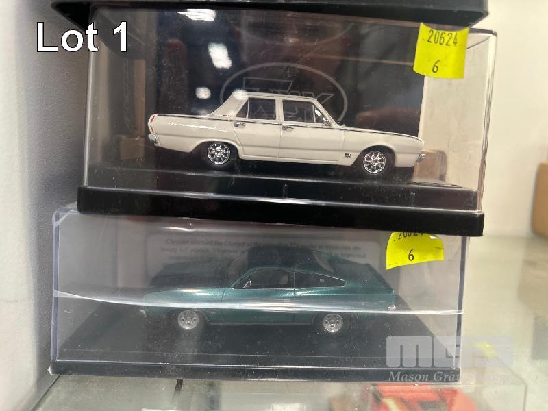 1965 AP6 VALIANT V8 SEDAN, WHITE/BLACK, 1:43 SCALE 1969 VF VALIANT PACER SEDAN, WHITE, 1981 CM VALIANT GLX SEDAN, WHITE, 1976 CL VALIANT CHARGER 770, GREEN & 1963 AP5 VALIANT REGAL SEDAN, WHITE