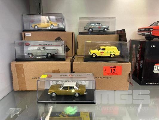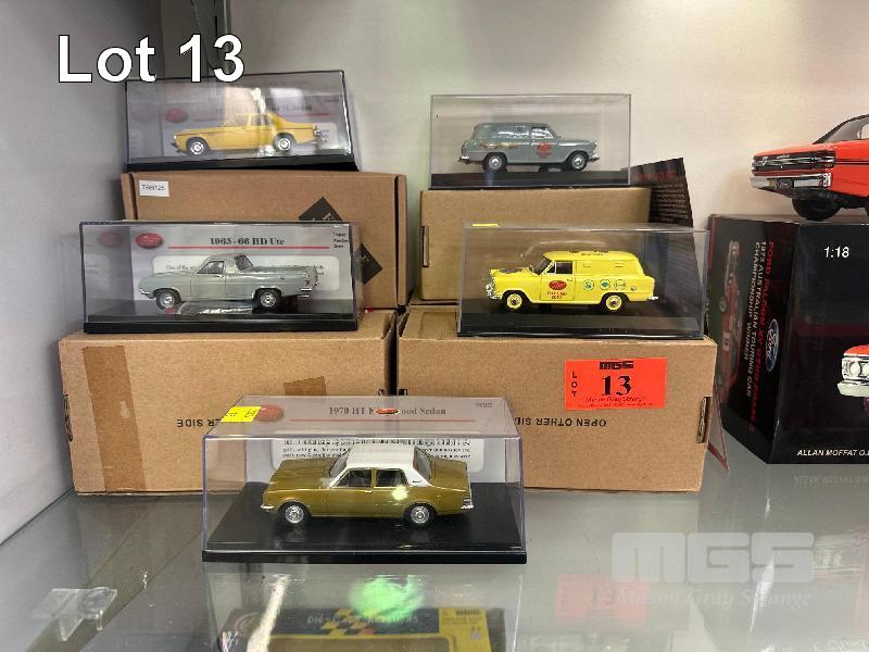 1965 HD HOLDEN UTE, GREEN, 1:43 SCALE, 1970 HT HOLDEN KINGSWOOD SEDAN, PERSIAN GOLD, WHITE ROOF, 1977 HZ HOLDEN KINGSWOOD SL SEDAN, YASMINE YELLOW, HOLDEN FE PANEL VAN, GREY, TRAX CLUB MEMBER, 1: 43 SCALE & HOLDEN FC HOLDEN PANEL VAN, YELLOW