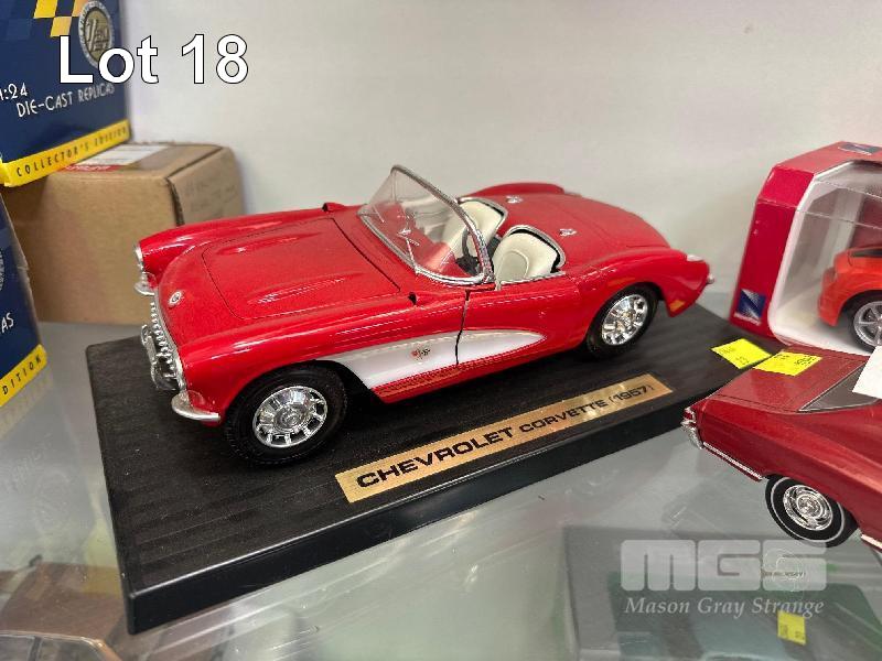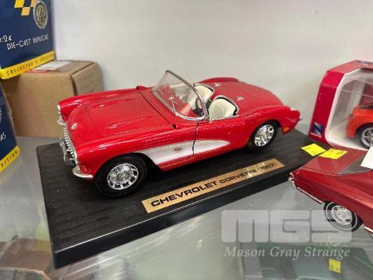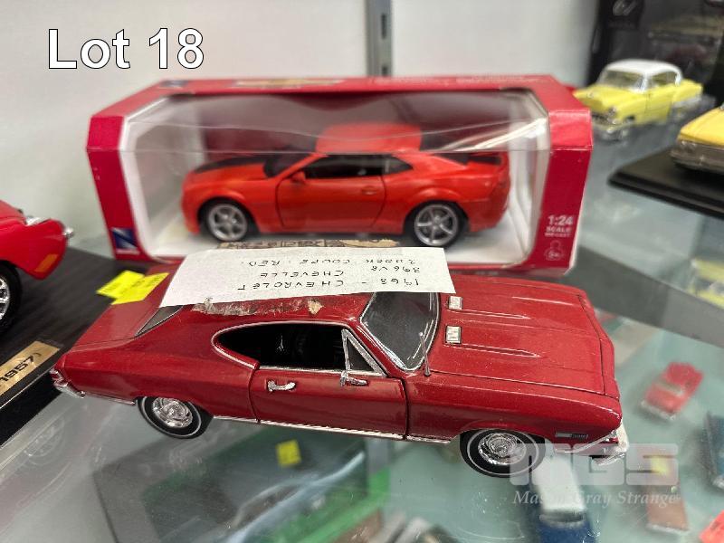 CHEVROLET CORVETTE 1957 2 DOOR COUPE, 1968 CHEVROLET CHEVELLE 396 V8 2 DOOR COUPE, RED & CHEVROLET CAMARO SS 1:24 SCALE