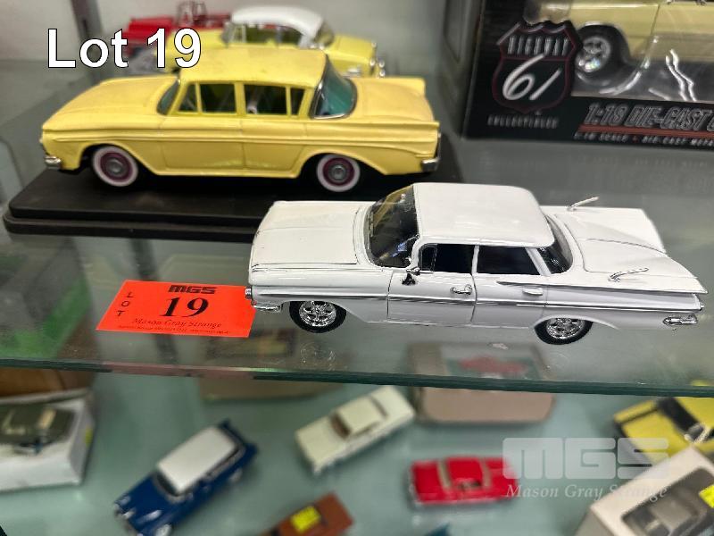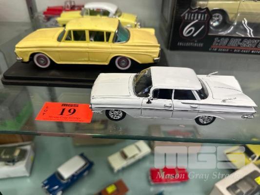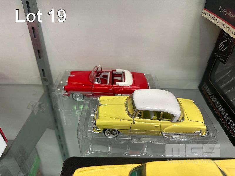 1954 CHEVY BELAIR COUPE, YELLOW/WHITE, 1:32 SCALE, 1954 CHEVY BELAIR 2 DOOR RED CONVERTIBLE & 1959 CHEVROLET IMPALA, WHITE, 4 DOOR, 1:32 SCALE