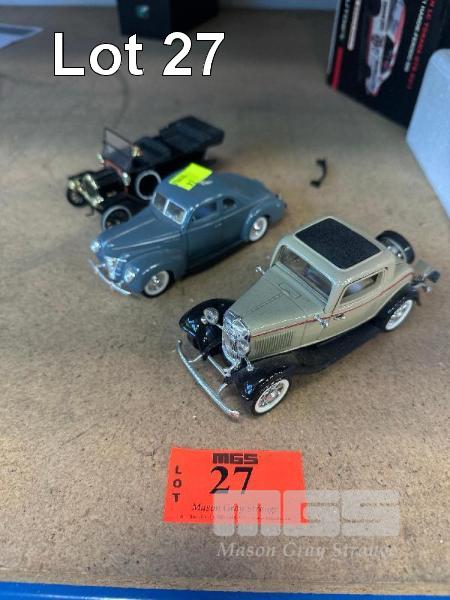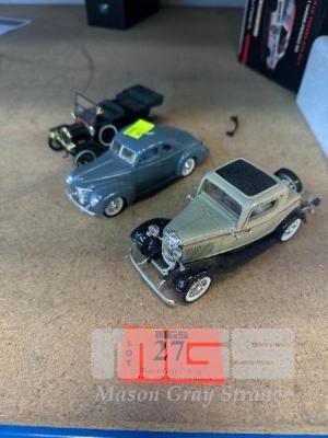 1910 FORD MODEL T COUPE, 1940 FORD DELUXE 2 DOOR HARDTOP, LIGHT GREY, 1:32 SCALE, DIECAST & 1932 FORD MODEL A 3 WINDOW COUPE, VS, 2 DOOR, BEIGE, 1:32 SCALE
