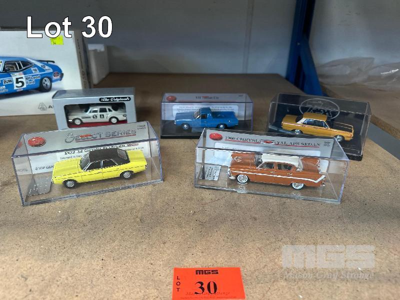 1962 R SERIES RACING VALIANT, TR35D, 1:43 SCALE, PAT HAWTHORN, PHILLIP ISLAND, MARCH RELEASED 1970 VG VALIANT PACER SEDAN, HOT MUSTARD, 1973 CHRYSLER, CJ BY CHRYSLER, YELLOW/BLACK ROOF, 1971 CHRYSLER VALIANT VH UTE, PACIFIC BLUE, 1960 AP3 V8 CHRYSLER ROYAL SEDAN, BURNT ORANGE/CREAM ROOF, SELECT SERIES