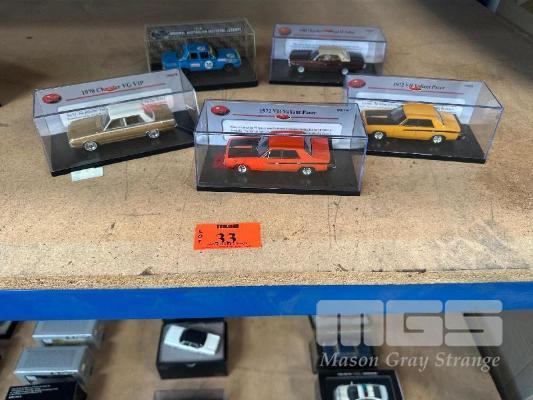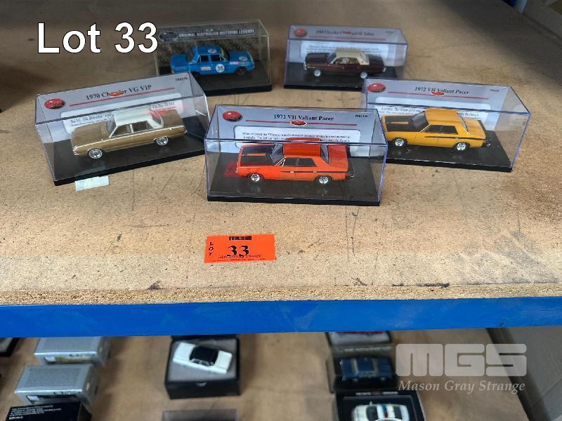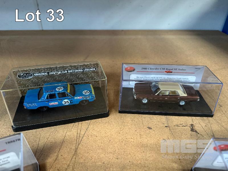 1980 CHRYSLER CM REGAL SE SEDAN, CHESTNUT BROWN, 1:43 SCALE, 1972 VALIANT VH PACER, HEMI SEDAN, ORANGE, 1:43 SCALE, 1972 VH VALIANT PACER SEDAN, HOT MUSTARD/BLACK RESIN, 1:43 SCALE, 1970 CHRYSLER VG VIP SEDAN GOLD/CREAM, 1:43 SCALE, 1970 BATHURST VG PACER SEDAN, CLASS C, 2WD IN CLASS, 4TH OUTRIGHT, BLUE DOUG CHIVAS & GRAHAM RYAN