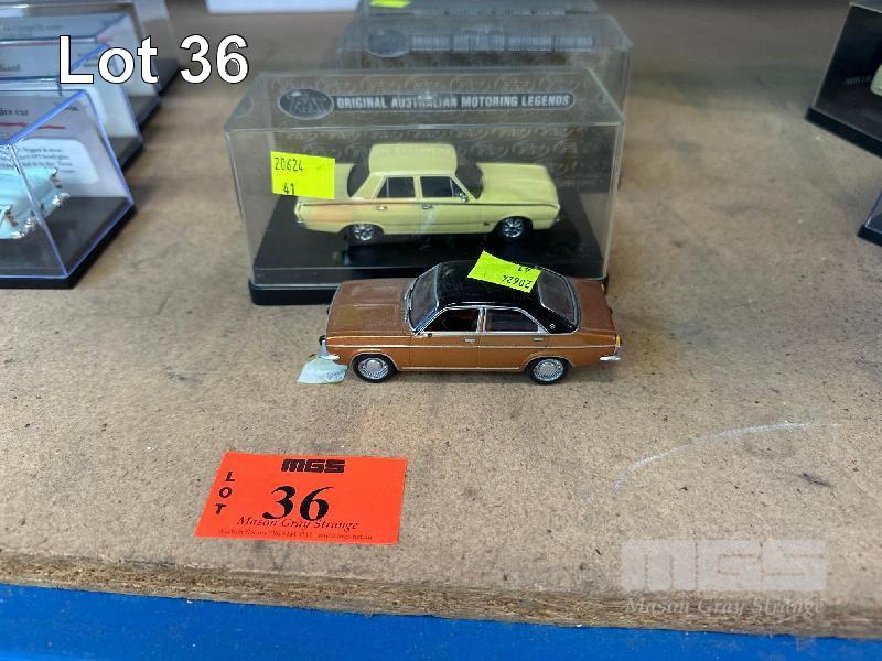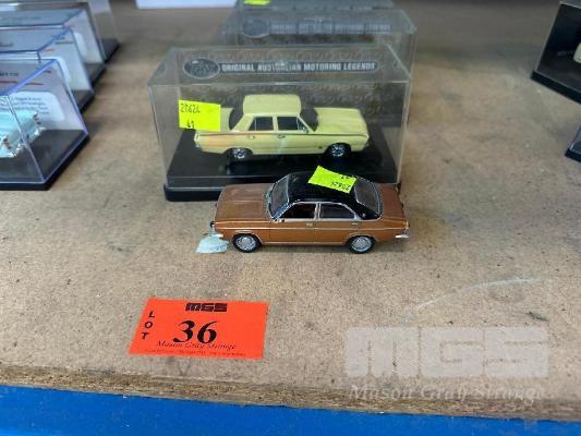 VF VALIANT PACER, RELEASED MARCH 1969, YELLOW/BLACK STRIPES, TRAX, 1:43 SCALE, 1969 VF VALIANT PACER SEDAN, BLUE, 1:43 SCALE, CHRYSLER 180 SEDAN, BROWN/BLACK ROOF & 1970 VG VALIANT PACER SEDAN, WHITE/RED PIN STRIPES