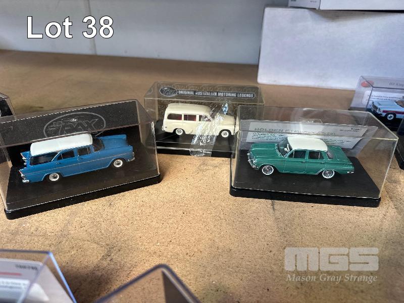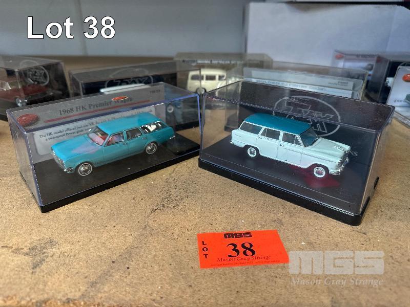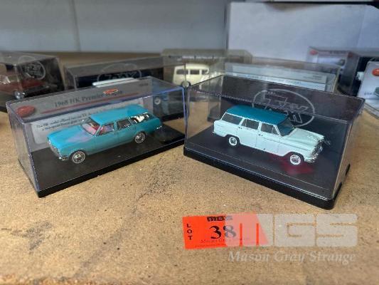 1961 EK HOLDEN SPECIAL WAGON, BLUE/WHITE ROOF, 1:43 SCALE, 1957 FE HOLDEN SEDAN, WHITE, 1968 HK HOLDEN PREMIER WAGON TENNYSON, TURQUOISE, 1962 EJ HOLDEN PREMIER SEDAN, GREEN, 1:43 SCALE & 1954 FJ HOLDEN WAGON PROTOTYPE, WHITE, 1:43 SCALE
