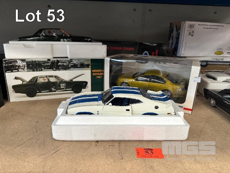 FORD BA FALCON XR8 SEDAN, GOLD, 1967 XR GT FORD FALCON BATHURST WINNER, DARK GREEN, CAR NUMBER 52D, XC FALCON COBRA COUPE WHITE/BLUE STRIPES
